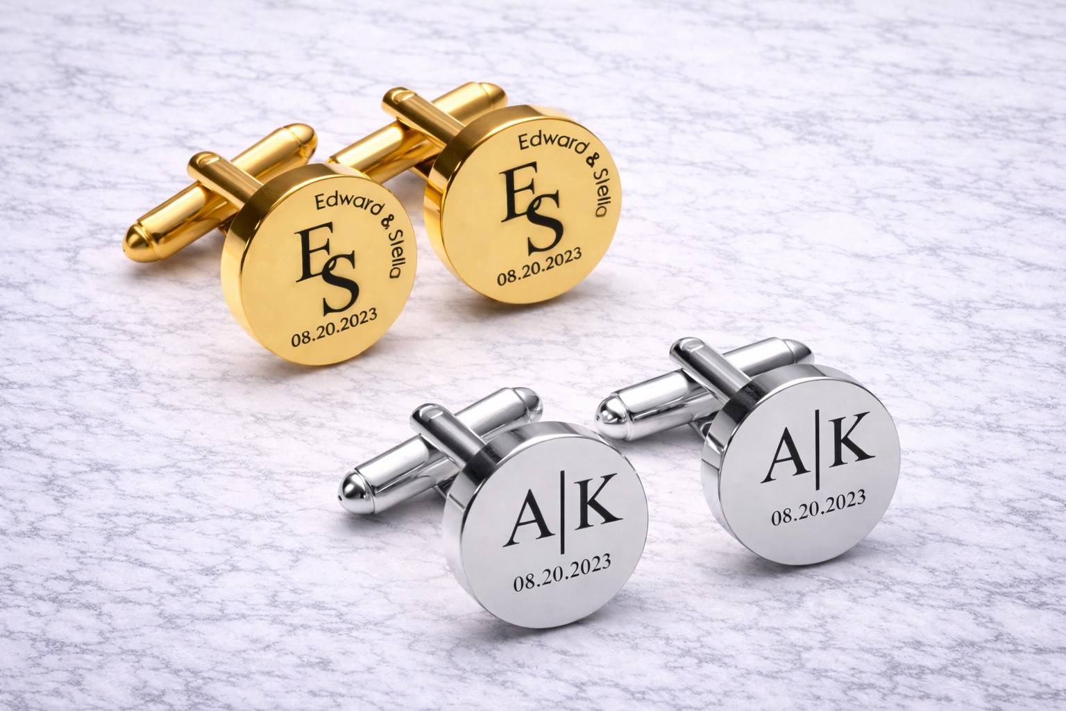 Diese personalisierten Manschettenknöpfe verleihen Hemd und Blazer eine elegante, individuelle Note. Sie sind das perfekte Accessoire für besondere Anlässe, formelle Auftritte oder den stilvollen Business-Look.