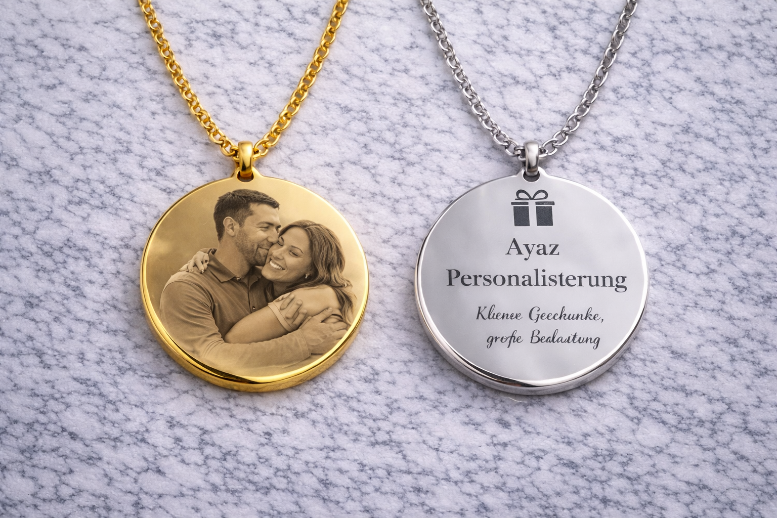 Ob Textgravur oder Fotogravur – jedes Schmuckstück wird individuell nach deinen Wünschen gefertigt und ist ein echtes Unikat.